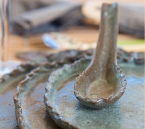 Ceramic dinnerware made from Honduran rainforest clays by women artisans from the town of San Juancito, an abandoned exmining town that is reviving through their fine craft.